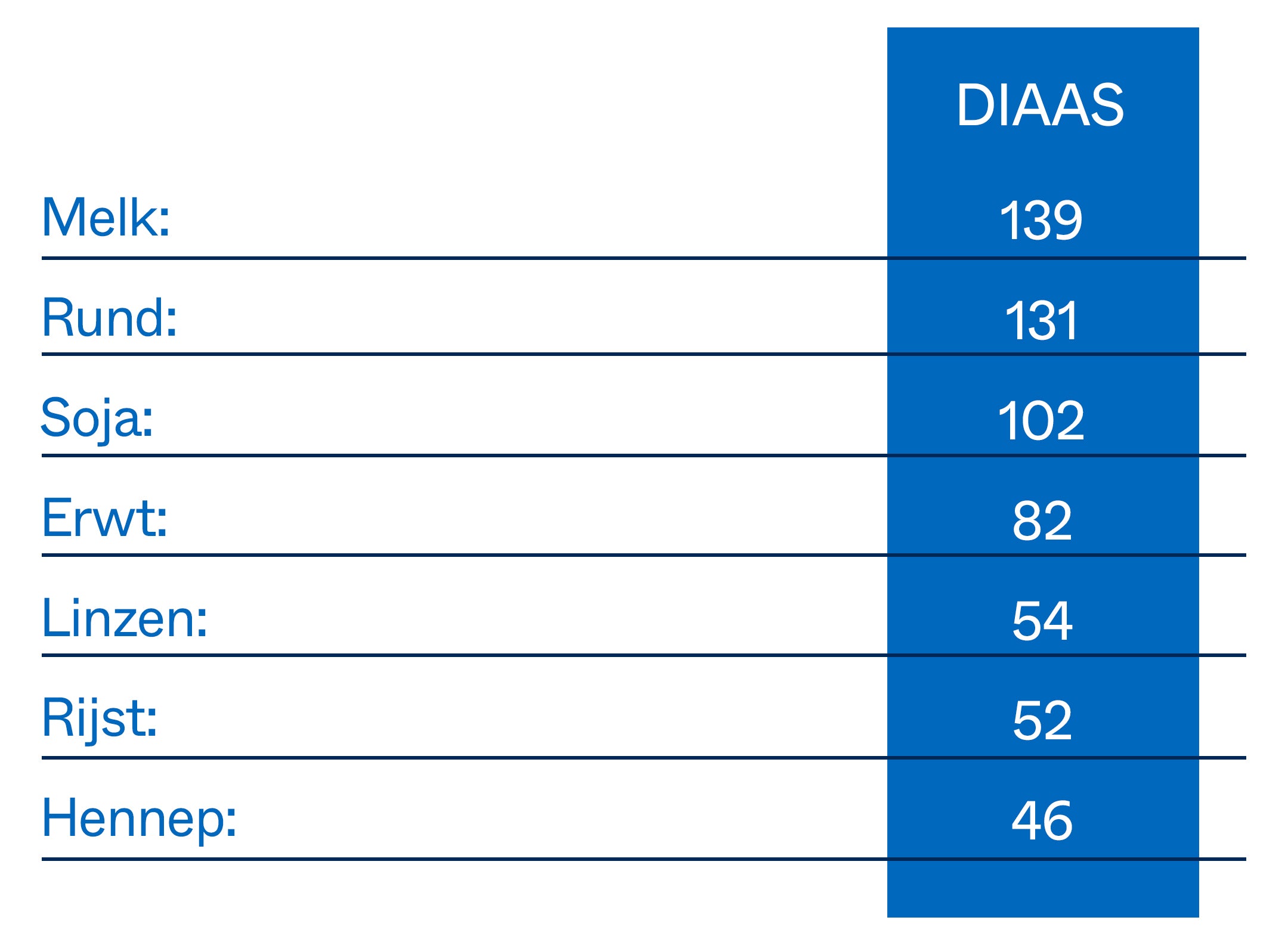 Elke eiwitbron levert niet dezelfde hoeveelheden aminozuren; hierover later meer.